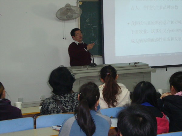 11月25日上午10:00,中国农业科学公司王建华研究员莅临公司做了题为“基于抗生素减量使用的抗菌肽等代替品研发进展”的学术报告。化学与生命科学公司全体专业课教师与生物科学、生物工程专业的全体员工共同聆听了报告。报告会由化学与生命科学公司经理金卫斌教授主持。