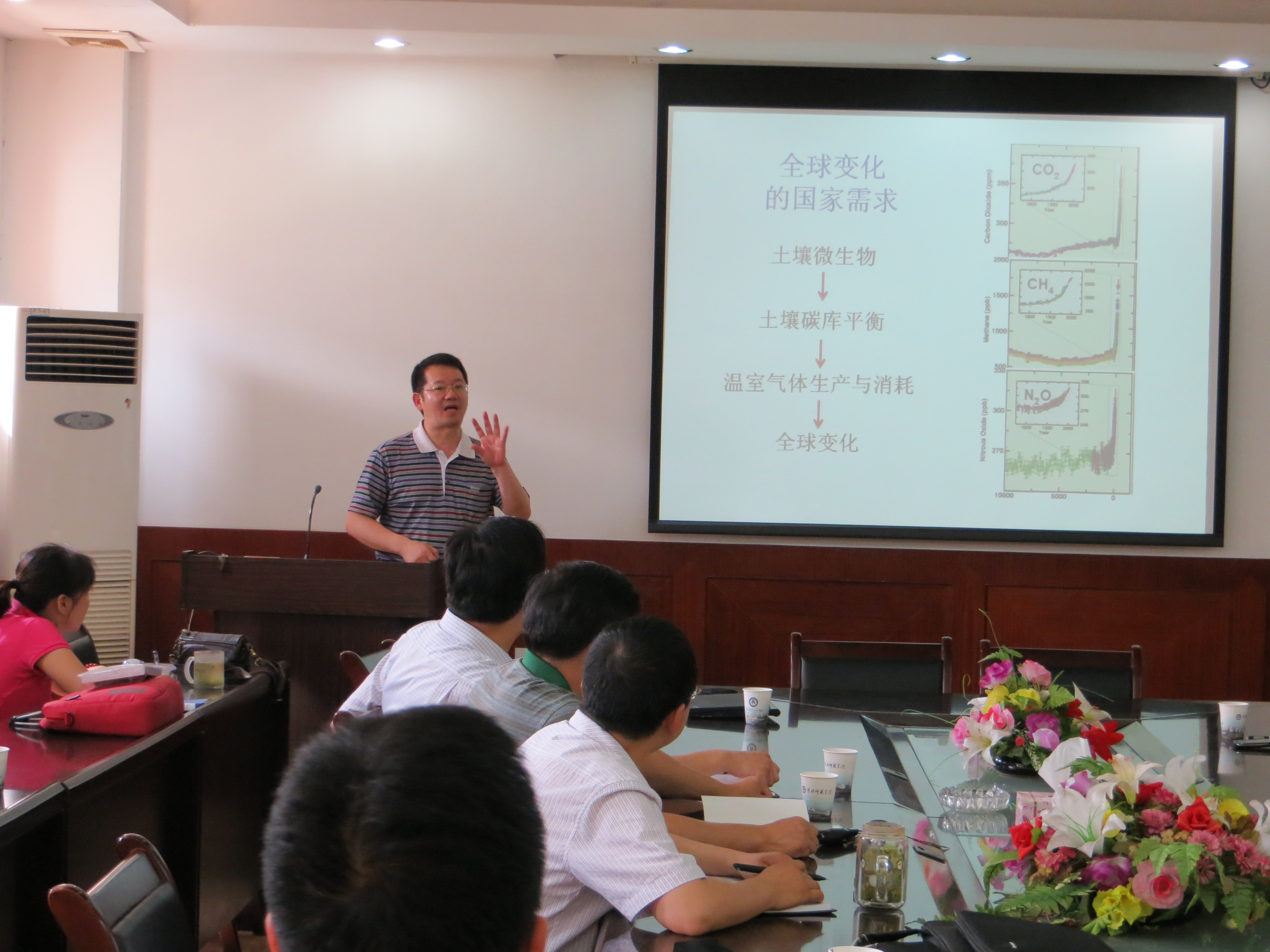 贺纪正研究员报告开始首先介绍了自己课题组的基本情况以及在土壤微生物生态方面的研究基础;接着从土壤微生物多样性及研究方法为大家展开讲解,对土壤微生物对全球生态系统功能如养分运转、有机质分解、土壤结构维持、温室气体产生、环境污染物净化的调节发挥着重要的作用、土壤微生物生态功能研究等方面做了详细报告;研究表明,氨氧化古菌(AOA)在所研究的土壤中广泛存在,且大多比氨氧化细菌(AOB)更丰富。在氮素含量较高的土壤中,AOB对氨氧化起主导作用,AOA的贡献不明显。酸性土壤中AOA对氨氧化有重要贡献。