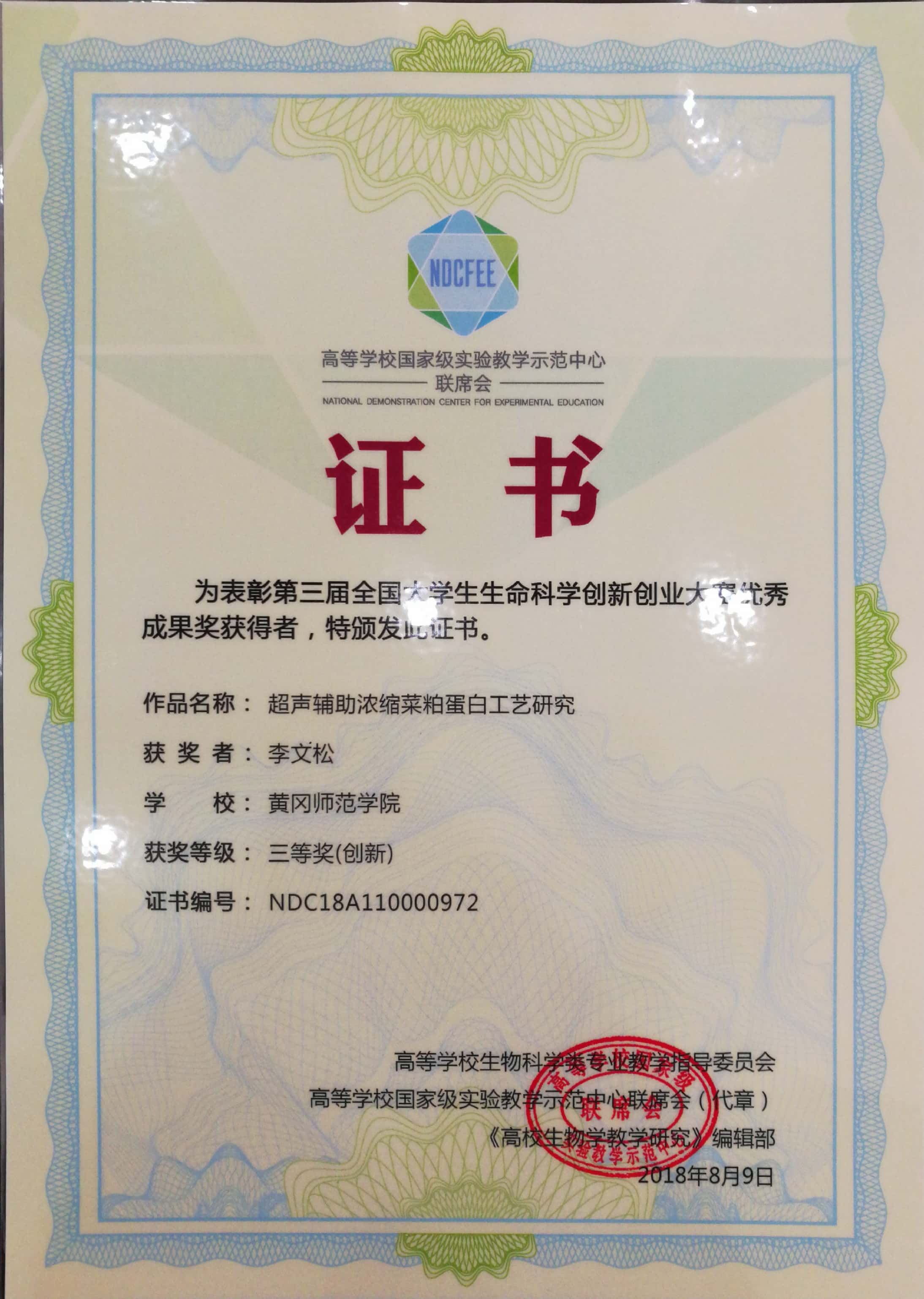 员工获奖证书