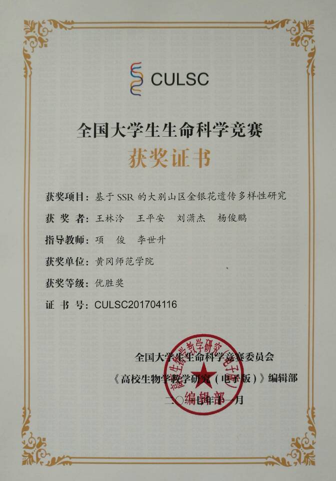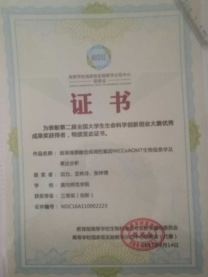 员工获得全国老员工生命科学竞赛优胜奖