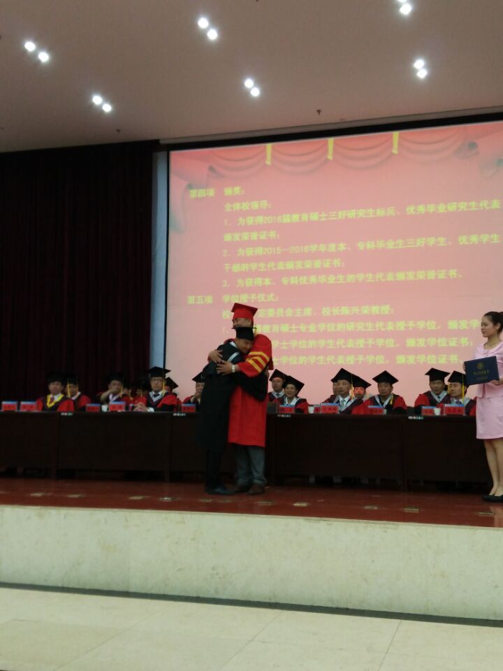 公司共有22名毕业生代表参加,其中,接受董事长亲授学位的有食科1201班李维、生工1202班查三省,走上主席台领奖的校级优秀毕业代表生科1201班骆亮、校级三好员工代表生工1201班郭毅松,另有18名毕业生代表参加现场观礼。