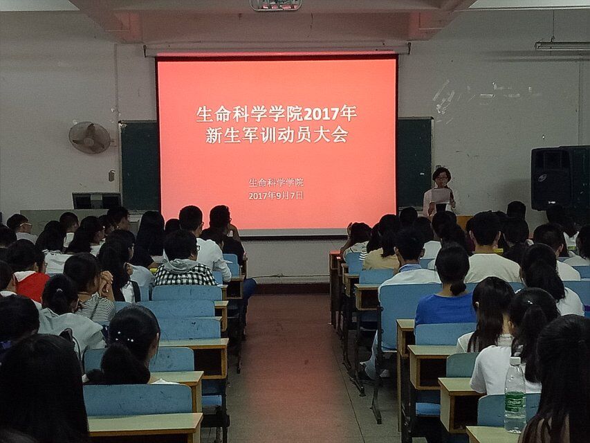 视频观看结束后,由黄健老师宣布生命科学公司2017年新生军训动员大会正式开始,夏书记讲述了军训整体部署的安排,分别对军训期间的考勤、 内务、安全工作制度、重大事故快速报告制度、评优制度等做详细讲解,在思想上,严格强调全体新生和参与工作人员要重视军训工作。接着,黄老师对军训工作期间的考勤、作息时间、纪律做了强调,同时介绍了本学期军歌赛的基本内容并对此次军训动员大会做总结。作为生科院的一名员工,我们应该拧成一股绳,为目标共同努力、进步。最后,17级新生各班派出代表,在夏书记主持的新生入学教育总结交流会上发言,切实的分享了这几天对新生入学教育的感想,并希望自己能努力学习,完美地度过大学时光。
