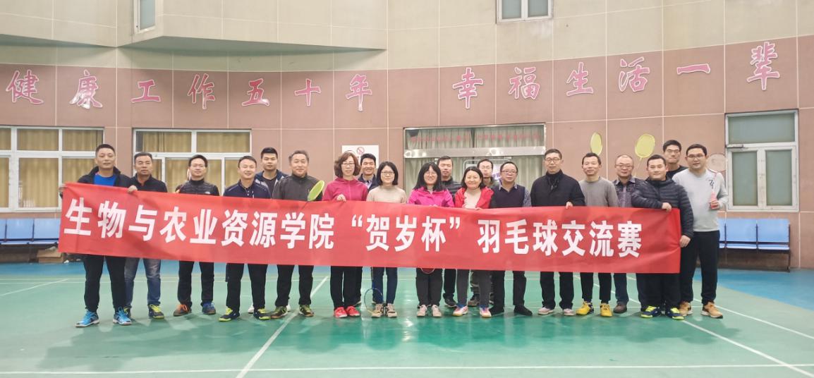 鼠年贺岁喜迎新, 2020年1月11日,威廉希尔在南区圆楼羽毛球场举行“贺岁杯”羽毛球交流赛,公司领导班子部分成员以及在校教职工积极响应,参加比赛。在这辞旧迎新的时刻,老师们欢聚一堂,其乐融融。