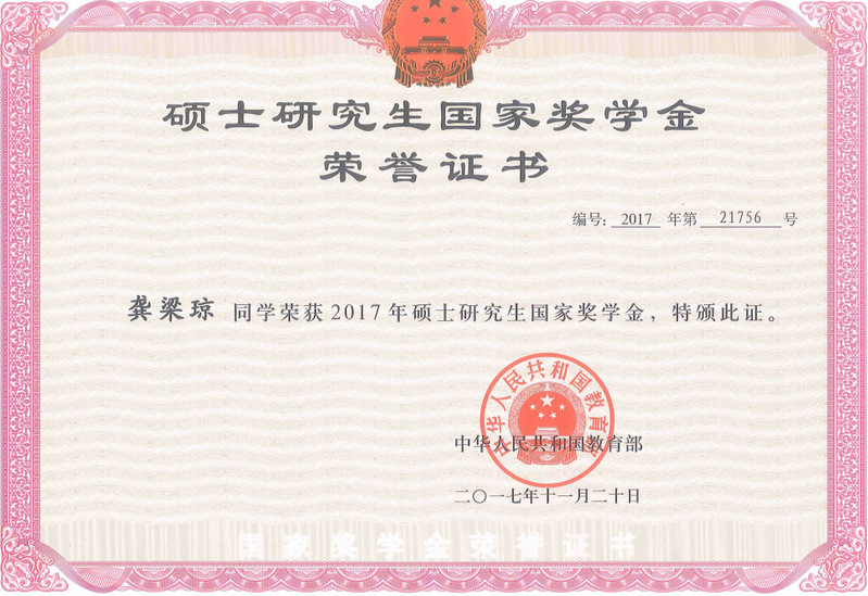 近日,在2017年度硕士研究生国家奖学金评选中,全校共有3名教育硕士获奖,公司2016级学科教学·生物龚梁琼同学获此奖项。
