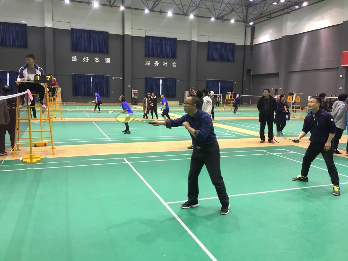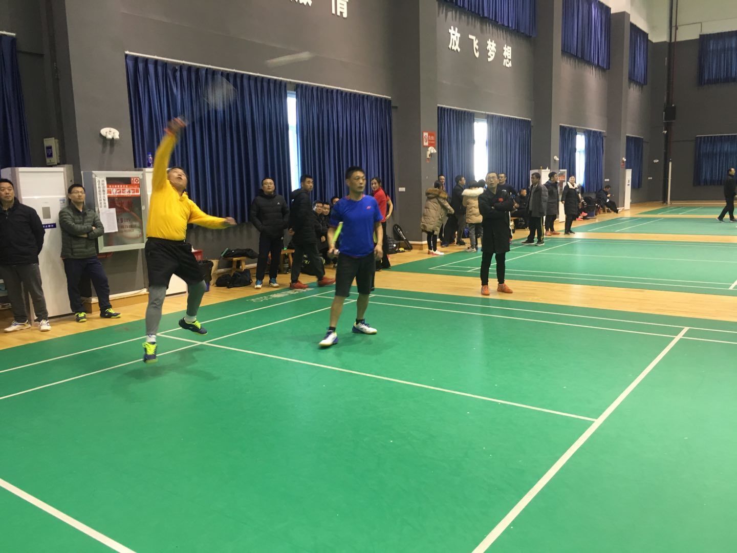 比赛分两个阶段进行,第一阶段采用分组单循环赛,第二阶段采用单淘汰赛。第一阶段各小组前两名出线,参加第二阶段淘汰赛,根据赛制,公司作为去年亚军队伍,不用参加第一阶段小组赛和第二阶段1/8赛,直接进入1/4赛。比赛精彩纷呈,赛场上全体队员勇敢拼搏、配合默契,他们娴熟的技术,灵活的脚步,时而扣杀,时而吊球,引来众多羽毛球爱好者观摩。在最后一场与体育公司的冠军争夺战中,老师们团结奋进、不负众望,以总比分3:2的成绩摘得校2020年教职工羽毛球赛的桂冠,为公司争得了荣誉。