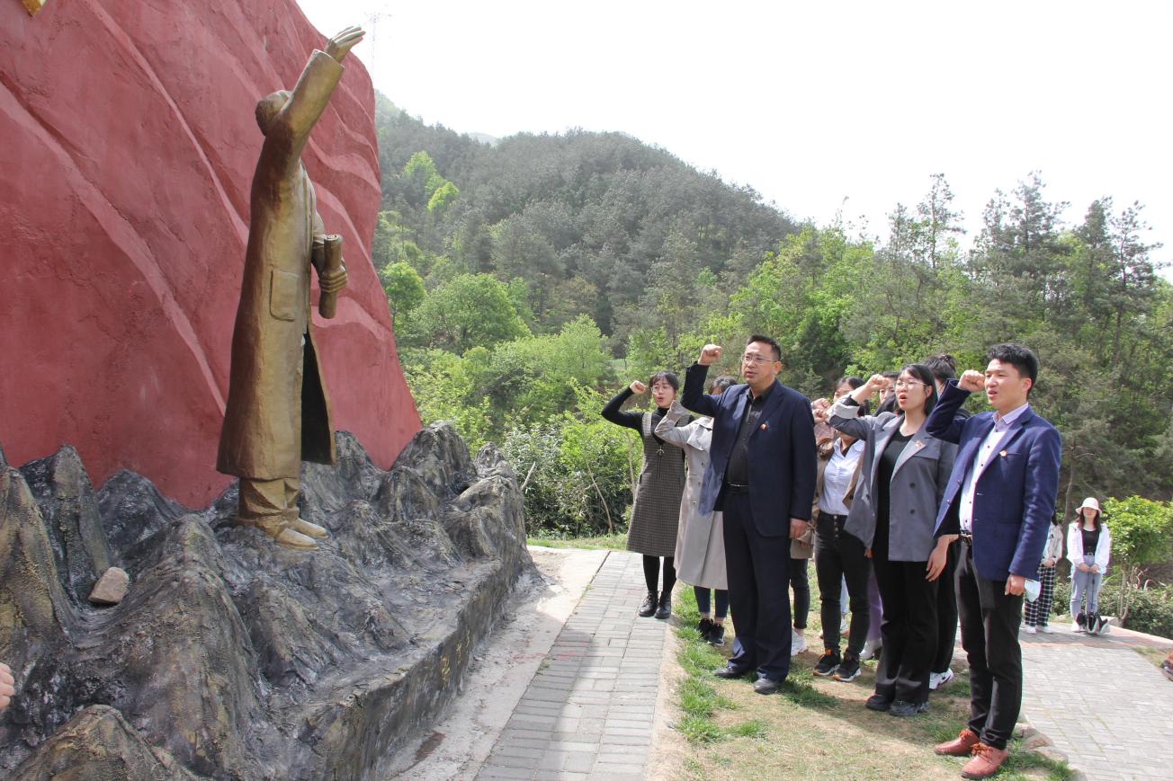 在摇晃的大巴车上党员们学习了党史知识和大别山革命故事,带着沉思,长途奔袭后抵达长岭关村,这里是刘邓大军千里跃进大别山,打响挺进中原第一枪的地方,被誉为“鄂东第一关”。在巍然屹立的革命先烈、曾任湖北省省长的张体学铜像前重温入党誓词;在山势陡峭、密林丛生的险要地形中重走红军路;在“林维先智取长岭关”、“高敬亭设伏长岭关”、“徐向前剿匪长岭关”......等英雄故事中缅怀前辈功绩。通过追忆党史和亲身体验,激励广大党员铭初心,践使命!