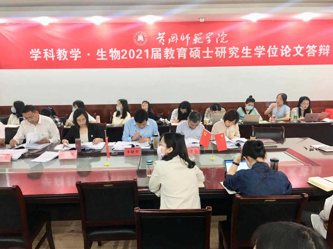 2021年5月26日上午,我院学科教学(生物)2021届教育硕士论文答辩在生物楼214举行。本次答辩由肖云丽经理担任答辩委员会主席,邀请了团风中学正高级教师丰晓华为答辩委员,各2019级教育硕士导师列席,2020级研究生全程观摩。