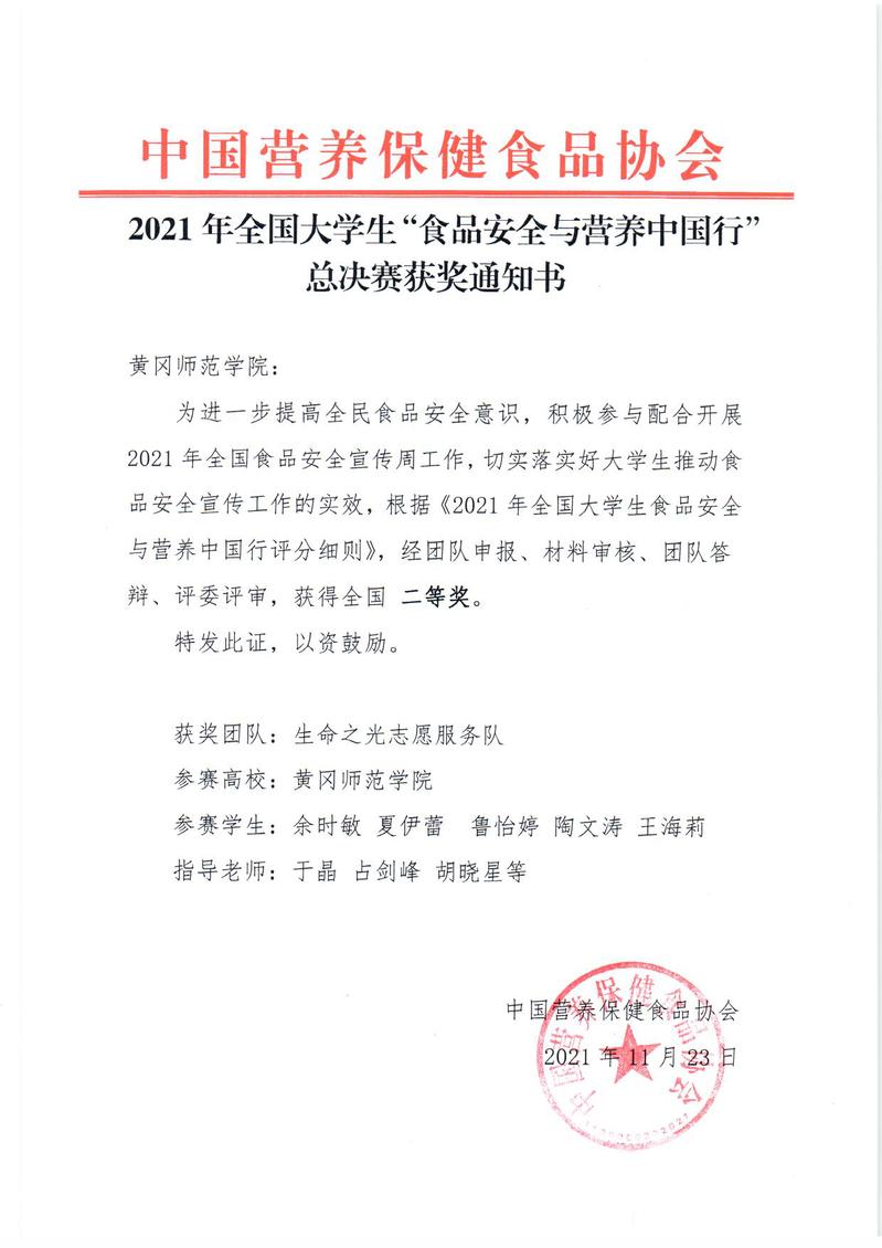 11月21日晚,由国务院食品安全委员会办公室指导,教育部高等公司食品科学与工程类专业教学指导委员会、中国营养保健食品协会主办,全国食品类高校思政联盟承办的“老员工食品安全与营养中国行”决赛活动以线上腾讯会议的形式进行,经过各省赛区初赛,来自华中农业大学、中国农业大学、西北农林科技大学等21所高校的22支队伍进入本次复赛、决赛环节的争夺。