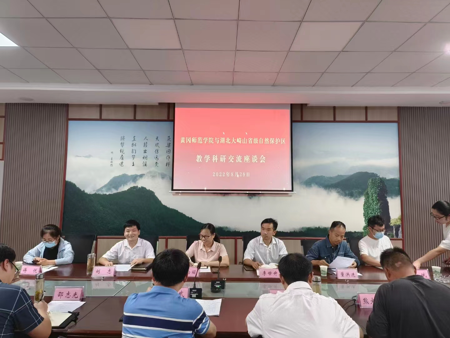 2022年8月29下午, 生农公司肖云丽经理带队赴湖北大崎山自然保护区洽谈项目合作。洽谈会由威廉希尔官方网站机电公司教授、团风县副县长刘志博士主持。