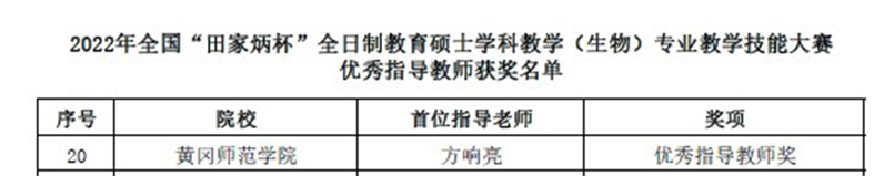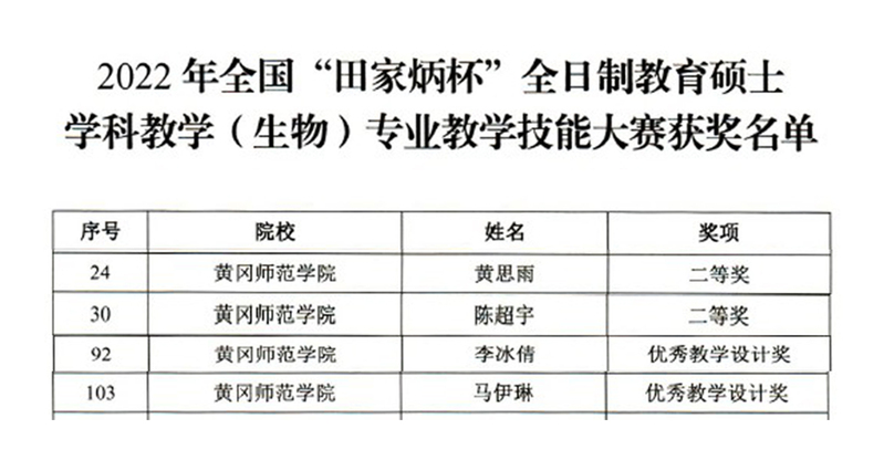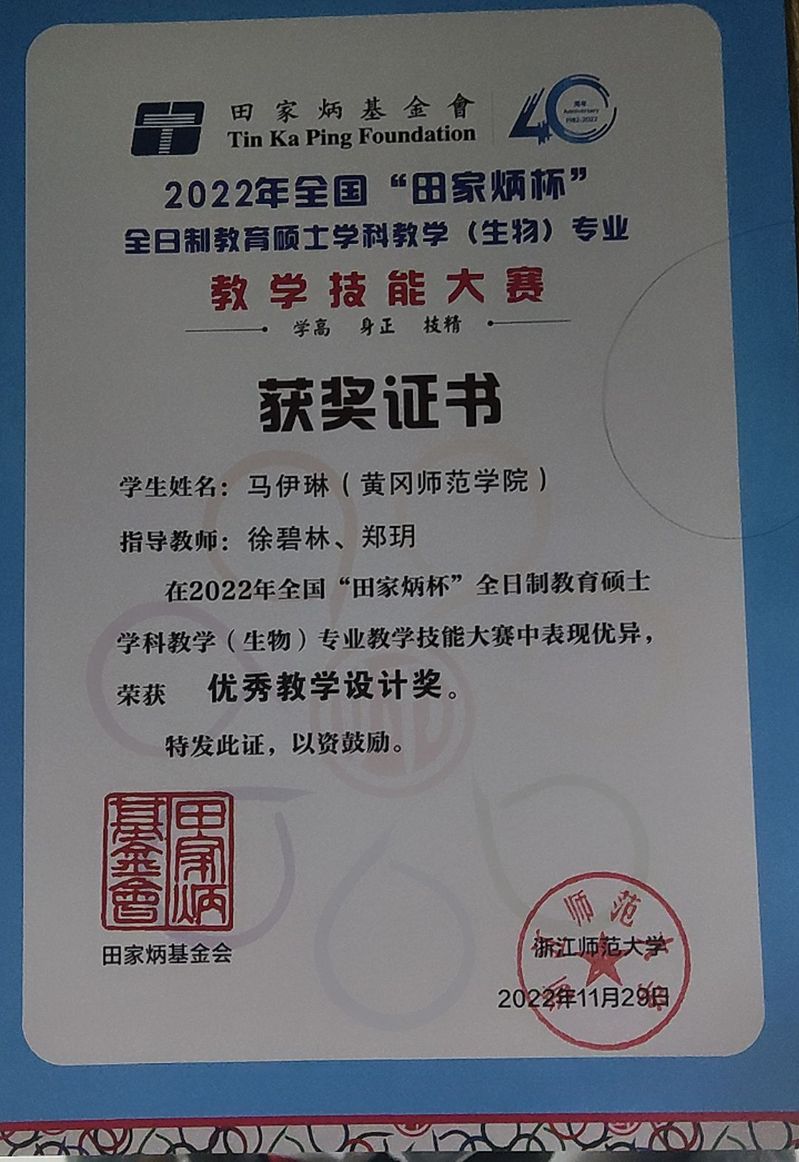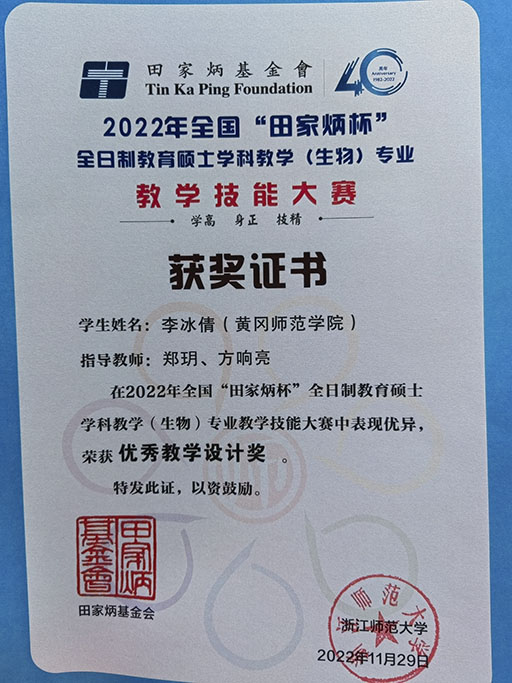 生农学子荣获2022年全国“田家炳杯”全日制教育硕士学科教学(生物)专业教学技能大赛国家级奖项