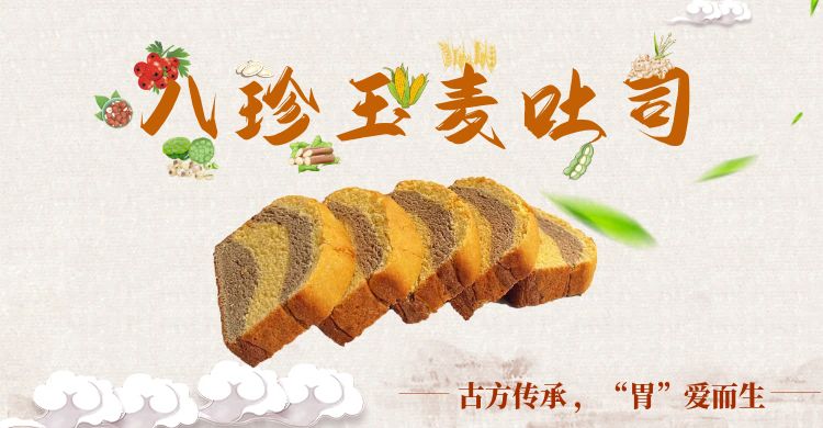 八珍玉麦吐司:绿色食材,康养产品。古法传承,“胃”爱而生。“八珍玉麦”,为您带来最棒的味蕾绽放,最好的健康产品。