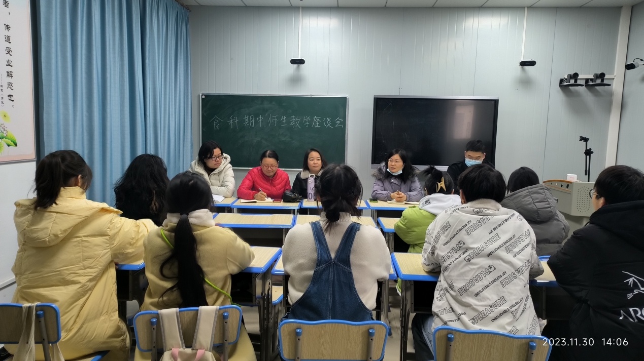 按照公司工作安排要求,11月30日下午公司在生物楼合01、生物楼214、连廊301、连廊216召开期中教学座谈会。副经理朱华国出席活动,各教研室全体教师以及2021级、2022级和2023级员工代表参加座谈。