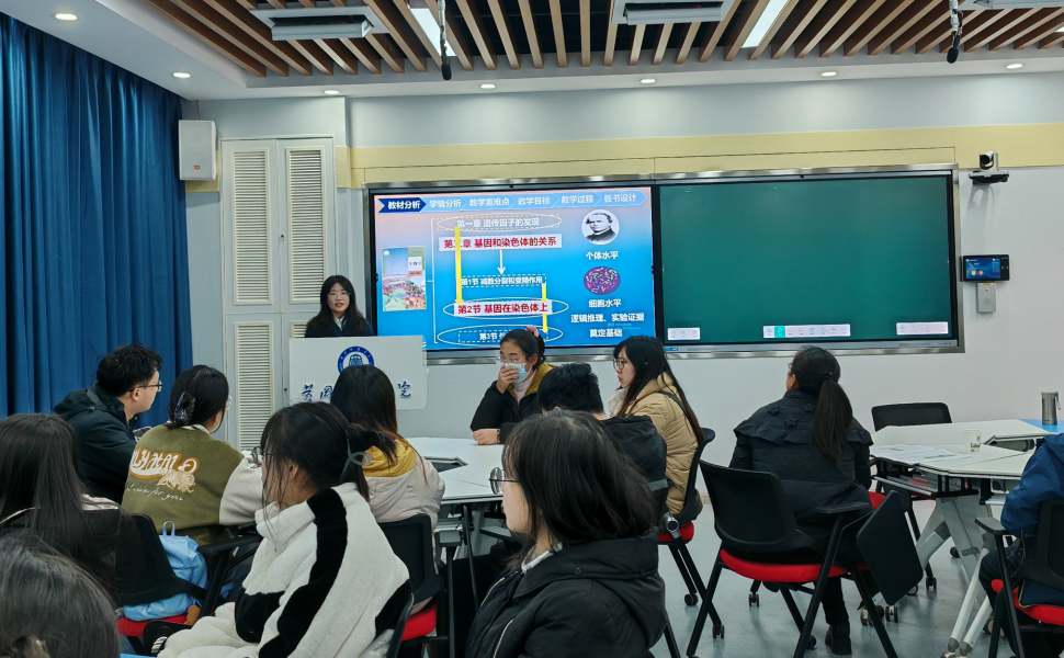 12月28日下午,在公司与黄冈市教育局联合主办的“基础教育名师工作坊示范活动”中,公司开展了优秀师范生、专任教师及黄冈基础教育名师“同课异构”的说课研讨活动。生物科学专业优师计划2106班屈懿宸同学、教学论专任教师程孟荣及黄州区一中尹全意老师对高中生物学“基因在染色体中上”这一节内容进行同课异构,威廉希尔副经理朱华国主持了本次活动,生物科学2105班和2106班全体员工及班主任参与了现场观摩。
