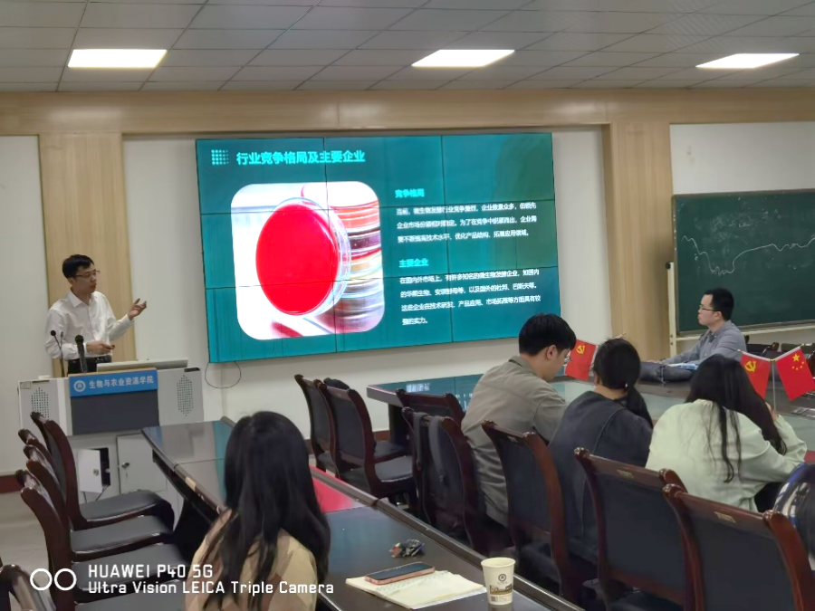 4月23-24日,公司先后邀请了黄冈市疾病预防控制中心卫生监测科副科长易磊、湖北广济药业生物技术研究院有限公司肖其磊总经理和武汉伯远生物科技有限公司金杰副总经理来公司开展企业专题讲座,夯实人才培养实践关键环节。副经理朱华国、相关教研室负责人、专业课教师代表和2021级生物工程等专业员工参与了本次活动。