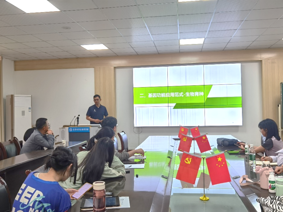 金杰作了题为《植物功能研究平台赋能种业和合成生物制造》的专题讲座。讲座介绍了基因功能研究及基于基因编辑的现代生物技术育种的一般范式,同时介绍了当前基因编辑技术在育种领域的前沿应用。金杰在讲座中以伯远生物为例,介绍了该企业作为国内最大的动植物转基因平台所涵盖的业务板块和优势平台技术,以及其在科技服务和遗传育种中的孵化助推作用。现场参会的老师和同学均积极与各主讲人进行了提问交流互动。