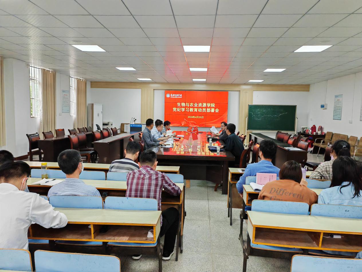 4月25日下午,公司在生物楼合01会议室召开党纪学习教育动员部署会,院领导班子成员、各党支部书记、全体教师党员和员工党员代表参加会议。公司党委书记闵艳林主持会议并作动员部署。