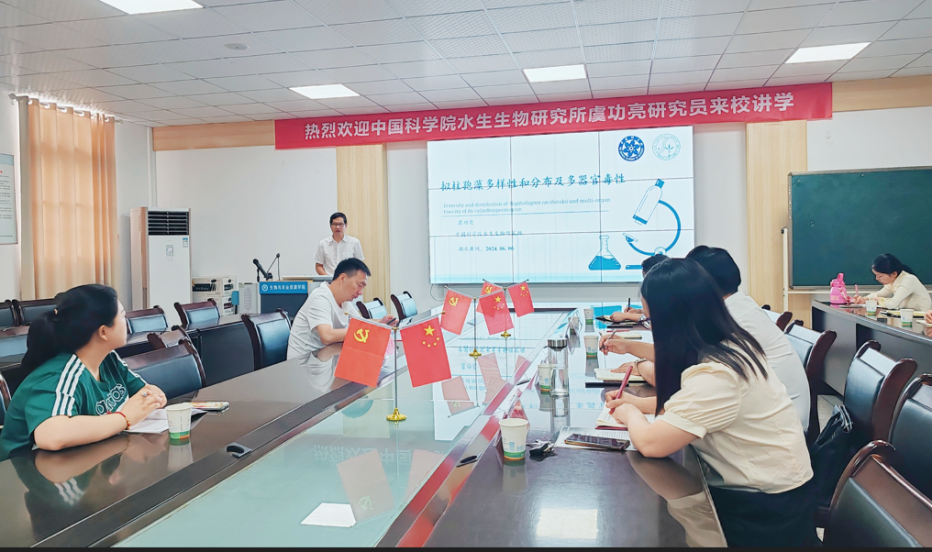 6月6日,中国科公司水生生物研究所虞功亮研究员应邀来校讲学,为我院师生带来了一场题为“拟柱孢藻多样性和分布及多器官毒性”的精彩报告。副董事长马志斌出席报告会并为虞功亮研究员颁发客座教授聘书。报告会由经理肖云丽主持。