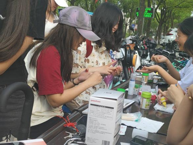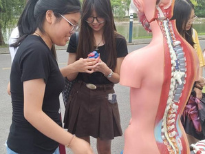活动中,结合人体骨架模型和内脏模型,宣讲小组为同学们讲解人体的基本构造,让同学们对自己的身体有了更科学的认识。使用电子血压计、血糖仪以及血型检测抗体分别对同学们身体的血压、血糖和血型进行了检测,通过相关检测指标提醒同学们爱护自己的身体,积极参加体育锻炼,养成良好的生活学习习惯。