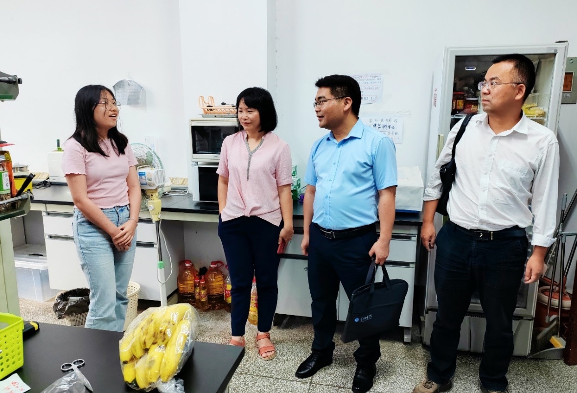在黄冈市公共检验检测中心食品药品检验检测所,由晏红星所长陪同,公司领导老师一行参观了各实验室,并针对实习生活的具体问题与员工进行了交流讨论,提出了积极的建议。闵艳林感谢食药检所对实习生们的耐心指导和热情帮助,希望双方协同开展实践育人、科学研究、社会服务等更多实质性合作项目。