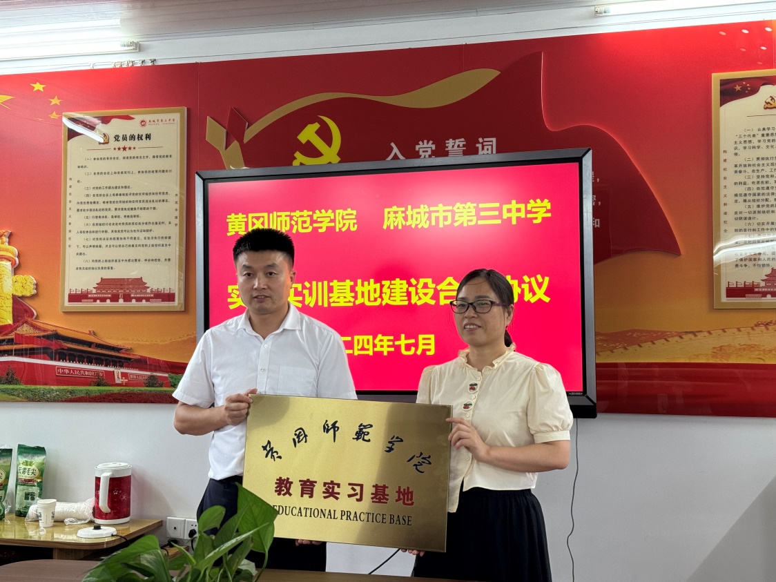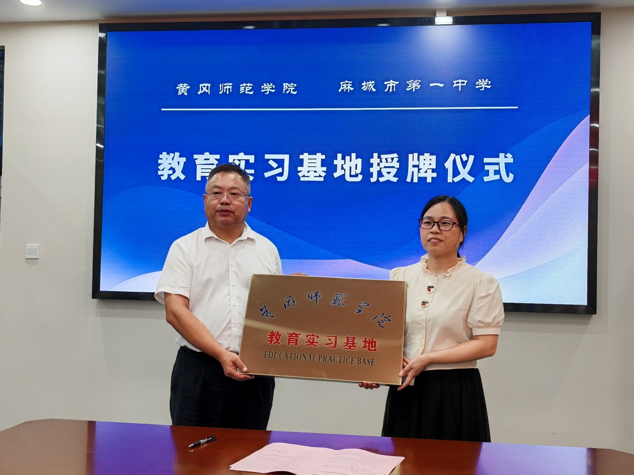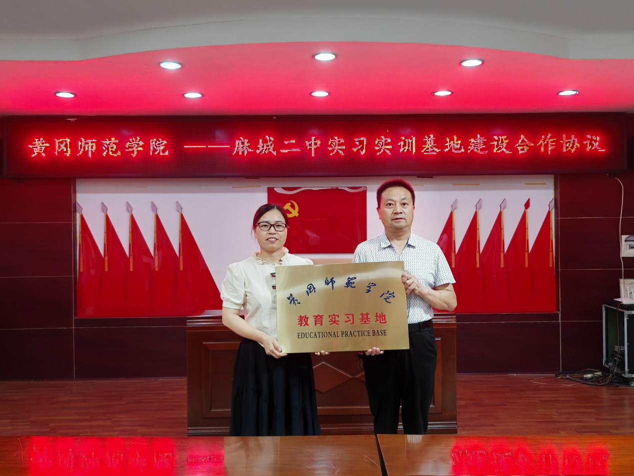 肖云丽经理与麻城三中董事长何为现场签订就业实习基地合作协议