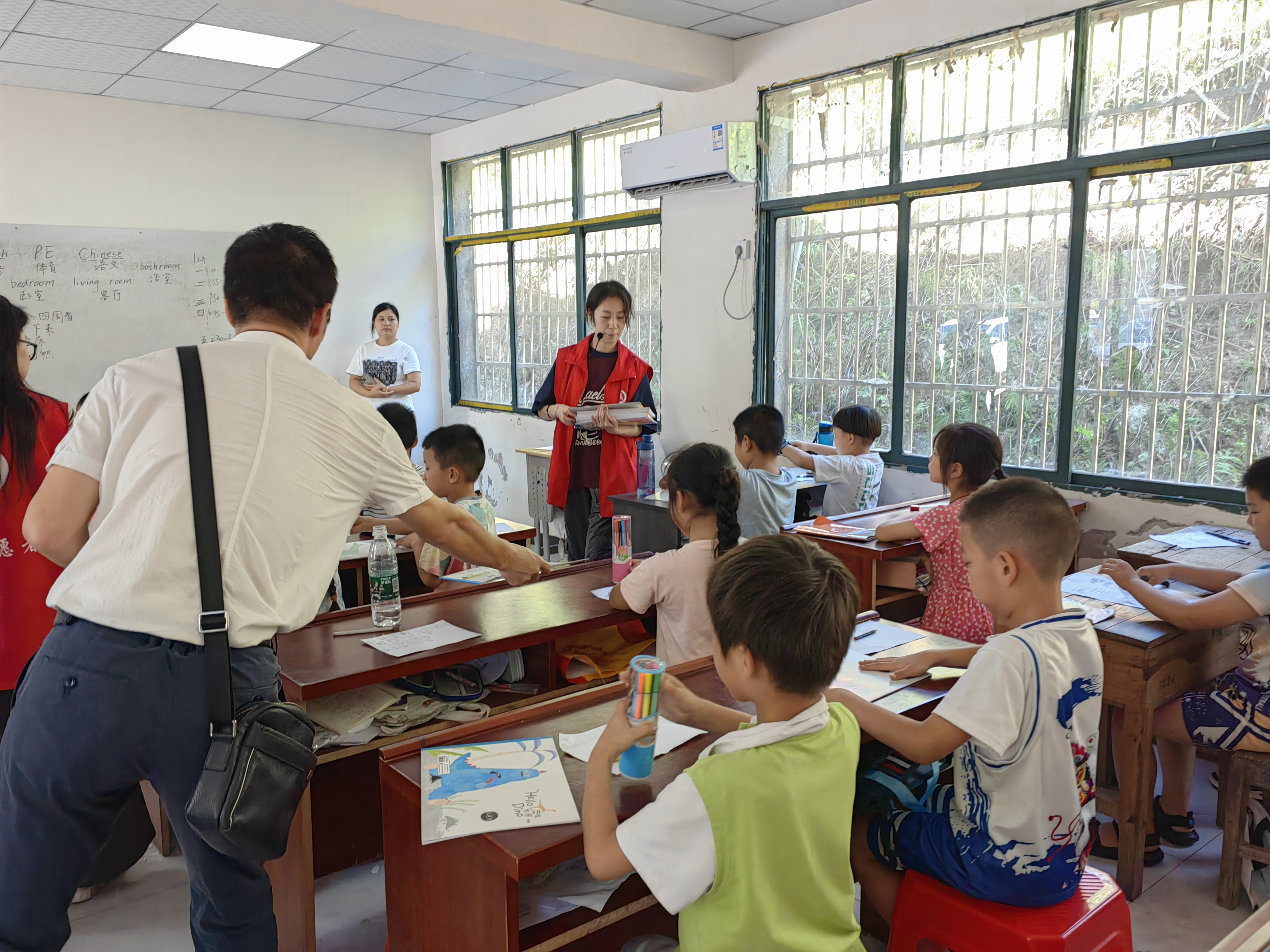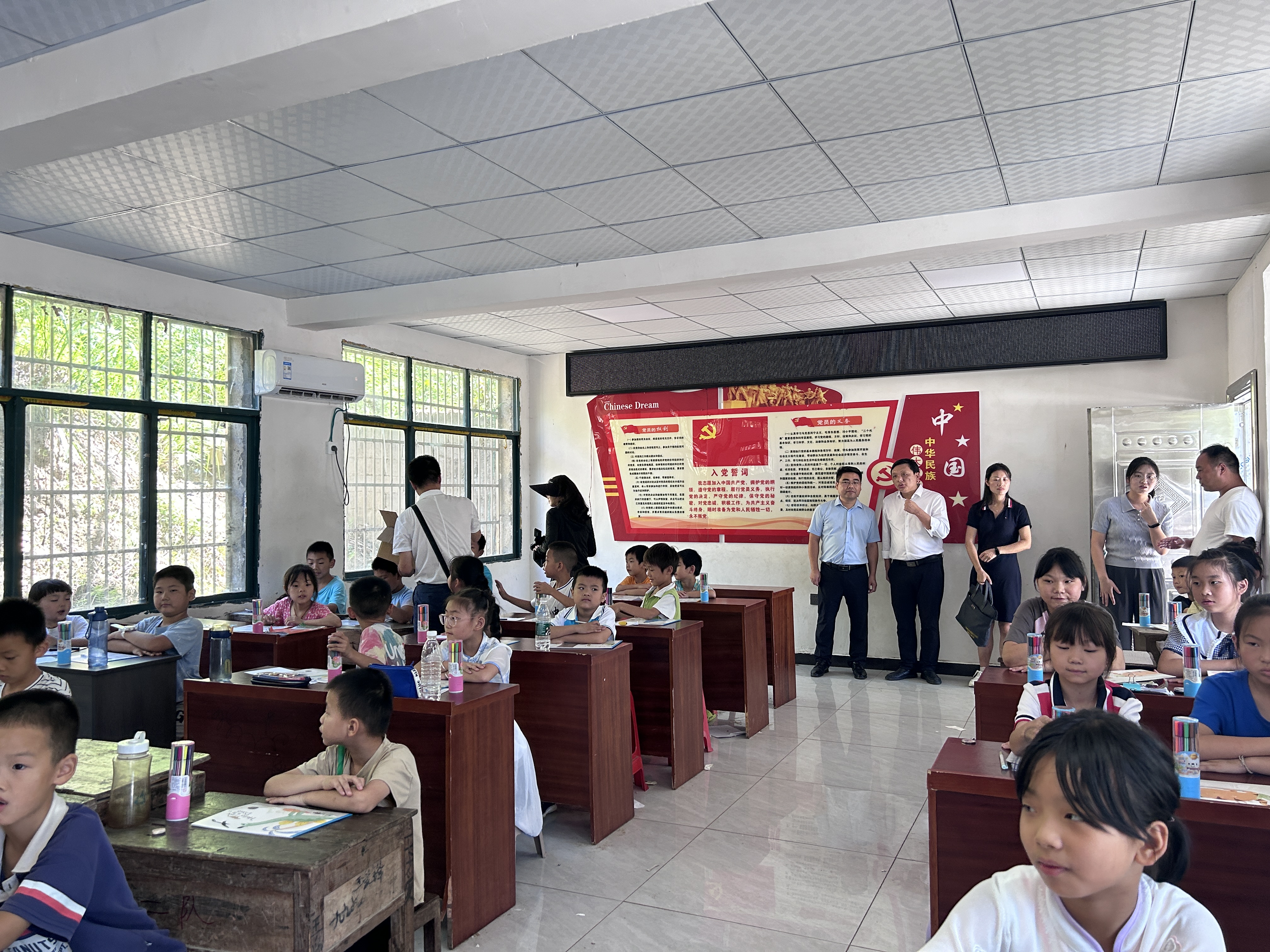 公司和属地领导们先后抵达生态环境保护志愿服务队服务地曹畈村和初梦科普团服务地黄冲村,详细了解团队志愿者们学习、工作、生活情况,并深入课堂观摩了志愿者们给小朋友上课的情景,为两村的小朋友送上公司精心准备的文具礼包。