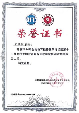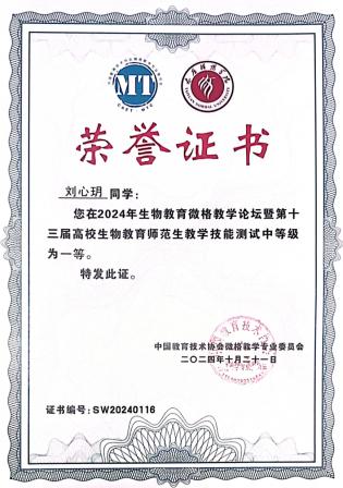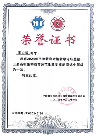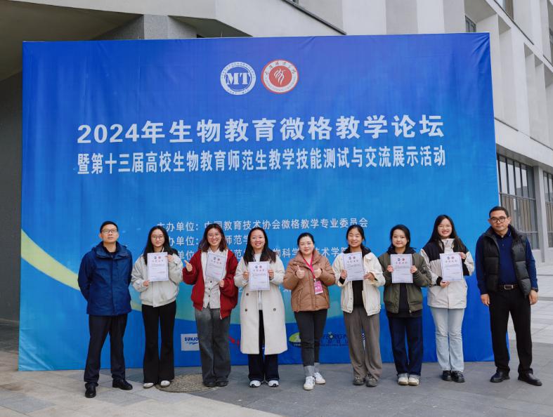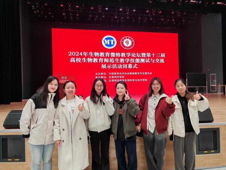 10月18日至21日,2024年生物教育微格论坛暨第十三届高校生物教育师范生教学技能测试与交流展示活动在山西太原师范公司举行。本次大赛汇集了来自全国80所师范院校的近400名生物师范生,竞争激烈。公司威廉希尔6名学子(王心仪、黄晶、刘彦妍、张陈榕、刘心玥、严晓怡)凭借扎实的专业知识、出色的教学技能和沉稳的临场发挥,在众多参赛选手中脱颖而出,斩获5个一等奖和1个二等奖,成绩创历史最佳。