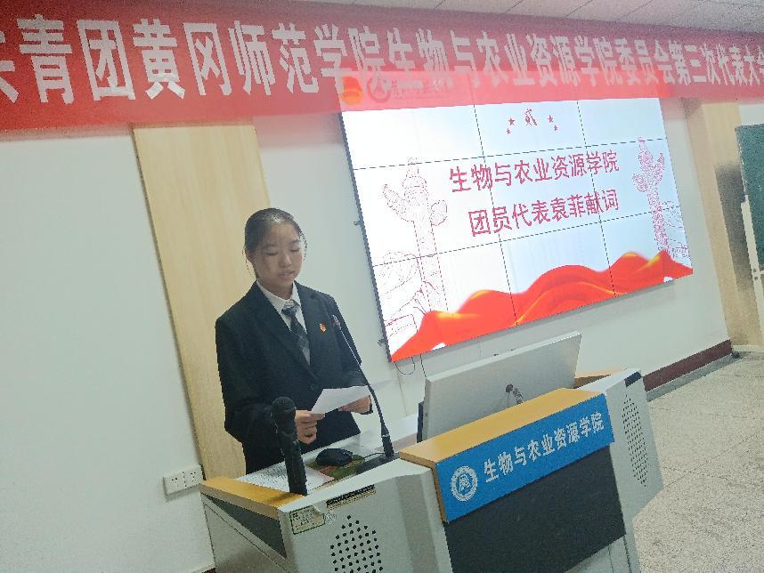 接着,团员代表袁菲同学献词,她表示,新时代的团员肩负着重大的历史使命,要坚定理想信念,坚定不移听党话、跟党走;要勤奋努力学习,不断提高自身的科学文化素养;要勇于担当责任,努力成为有理想、有道德、有文化、有纪律的社会主义建设者和接班人,用青春的热血书写无愧于时代的壮丽篇章。