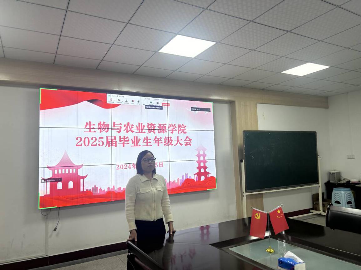 为扎实推进2025届毕业生考研就业工作,引导毕业生明确考研方向、树立正确的就业观念,10月25日下午,公司在生物楼合01会议室召开了2025届毕业生年级大会。公司党委书记闵艳林,经理肖云丽,副经理占剑峰、朱华国出席会议,毕业年级辅导员、班主任以及食科、生工、植科专业全体2025届毕业生参加会议,在外实习师范生线上参加会议。公司党委副书记李燕主持会议。