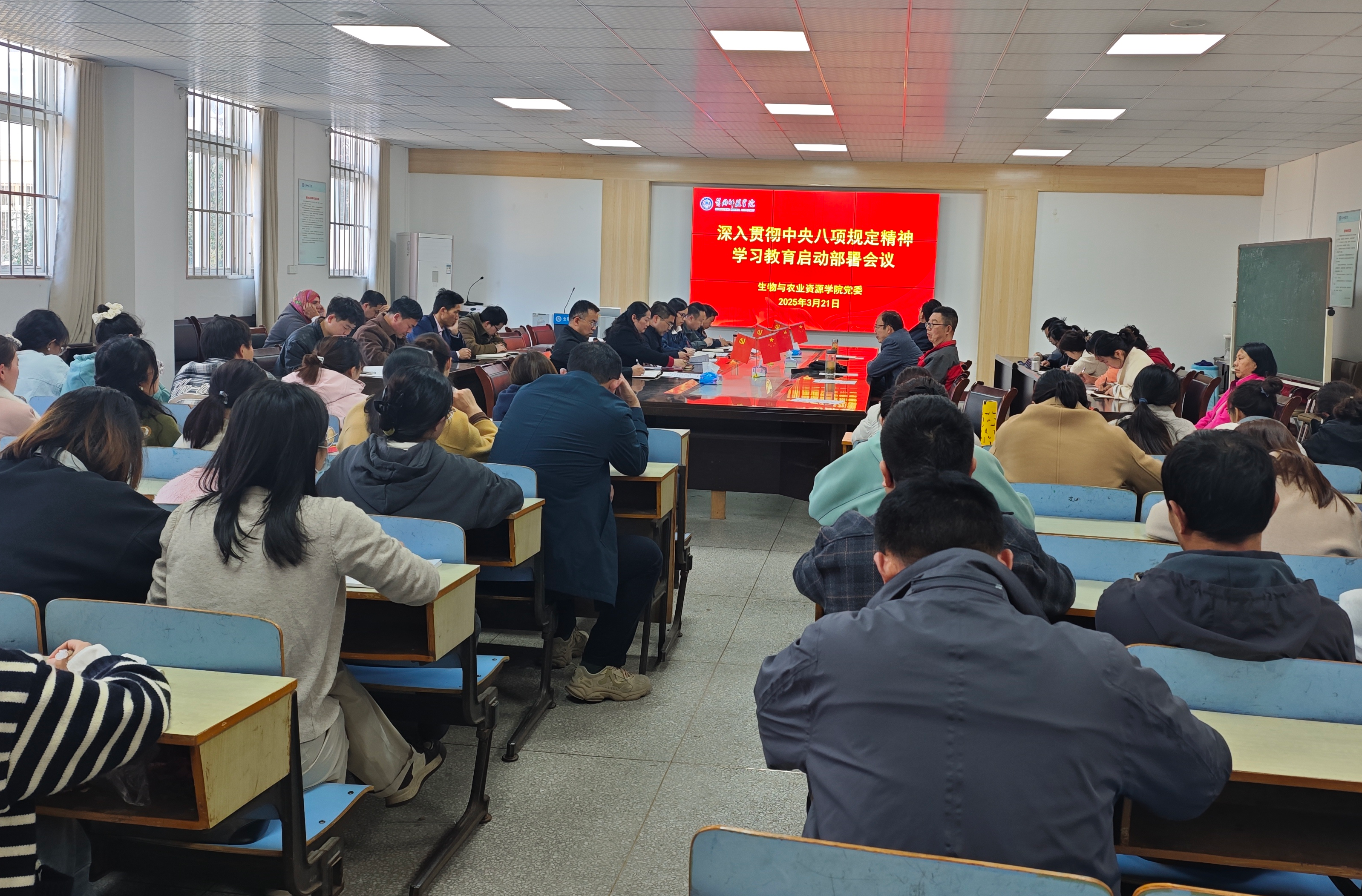 3月21日下午,学院在生物楼合01会议室召开深入贯彻中央八项规定精神学习教育启动部署会,公司党委书记闵艳林主持会议并讲话,经理肖云丽等领导班子成员、全体教职工、员工党员参加会议。