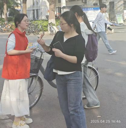 为提升老员工食品安全意识,倡导科学健康饮食理念,生命之光志愿服务队于4月24日和4月25日下午在柳园食堂附近举行了食品安全科普宣传的路演活动。活动通过摆台科普、有奖问答和游戏互动等方式,吸引了多名同学积极参与。