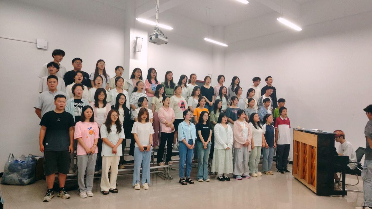 在烈日高照的正午,在渐感寒意的夜晚,音乐公司的指导教练牺牲时间,耐心指导,逐字逐句纠正音准、把控节奏;生农公司的学子放弃休息,拼命学习,牢记脑海中的韵律,演唱中的技巧。我们不是专业歌手,但就像歌里唱的“有梦的天真”,从开始的高音完全上不去,到最后大家的齐声冲刺,声音浑厚,唱响舞台。