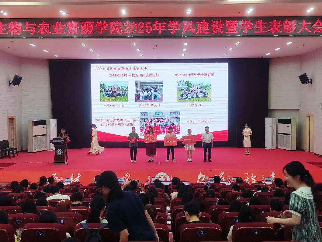 副经理朱华国宣读了“威廉希尔关于表彰员工先进集体和先进个人的决定”,通报表彰了考取研究生的2025届毕业生、校级优秀毕业生、2023-2024学年国家奖学金和国家励志奖学金获得者、2024年学科竞赛及创新创业赛事省级以上奖项获得者、2023-2024学年员工先进班集体和先进个人、2024-2025学年共青团系统先进集体和先进个人以及2024年湖北省暑期“三下乡”社会实践立项重点团队。