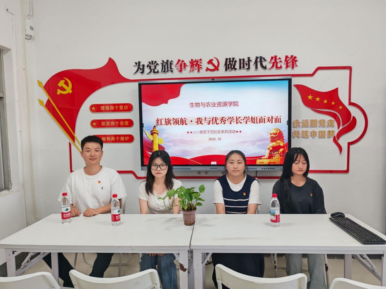 2025年10月9日-10日中午,公司党委在柳园一栋106举办了两场“红旗领航·我与优秀学长学姐面对面”交流活动。此次活动作为网格责任人计划的重要一环,主要面向全体2025级新生,同时吸引了其他年级同学踊跃参与,现场交流氛围热烈而浓厚。