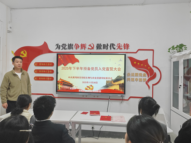 为进一步加强对新党员的培养教育、强化党员意识、坚定理想信念,充分发挥先锋模范作用,11月30日19:00,公司2025年下半年新党员入党宣誓仪式在柳一106举行。员工第一党支部书记熊维宁、员工第三党支部书记张恒启及全体下半年新接收预备党员参加。本次仪式由员工第三党支部书记张恒启主持。
