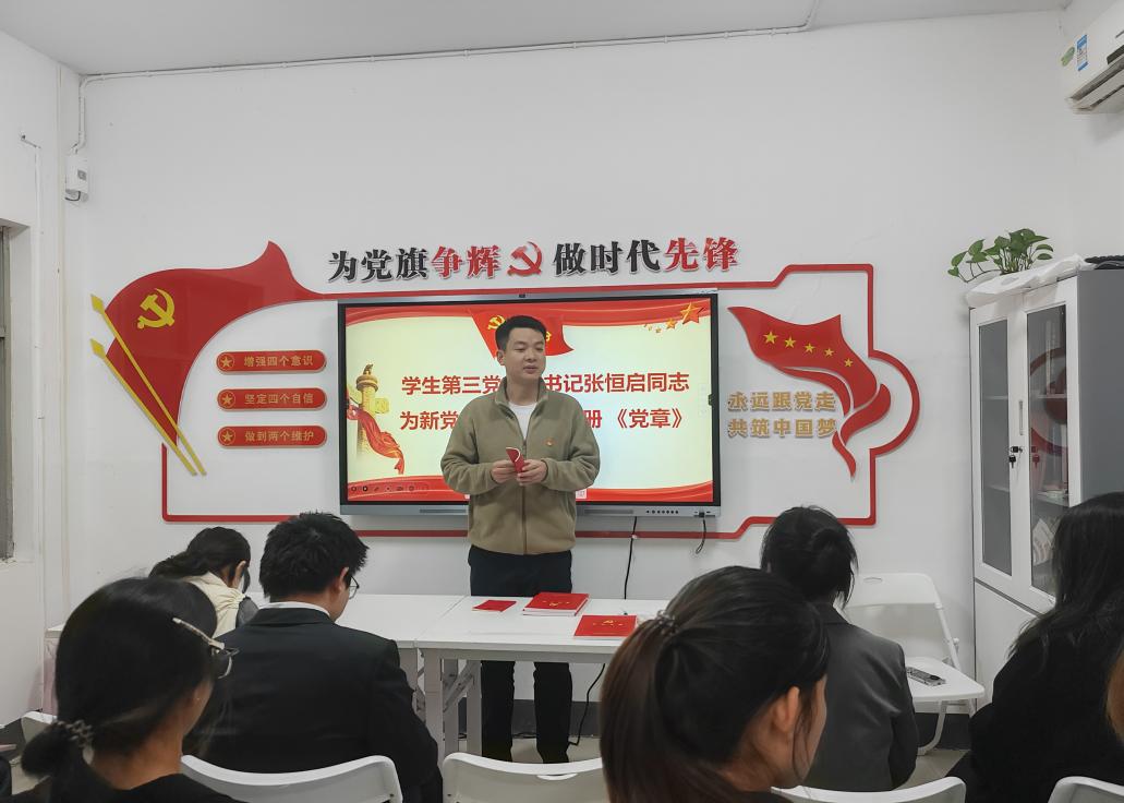 第四项,由员工第三党支部书记张恒启同志为新党员发放《党章》和党员手册。