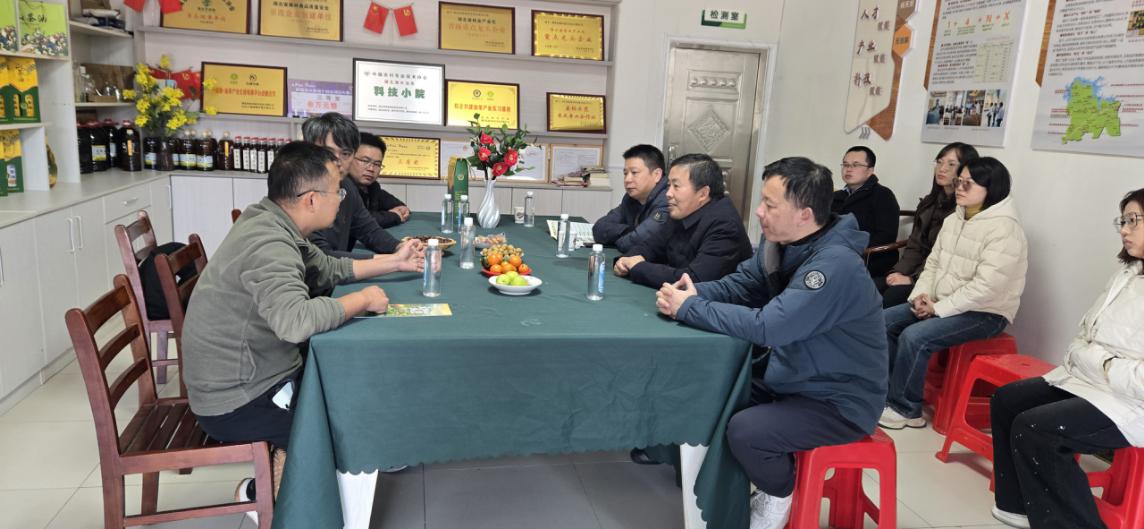 为深化产学研融合,服务地方特色产业发展,12月16日,公司副经理朱华国教授带领退休返聘专家胡孝明教授及吴伟博士、王益民博士、李文莹博士、汤欣欣博士等一行8人前往浠水县绿杨乡油茶科技小院,开展油茶种植与精深加工技术调研指导。湖北绿满香绿色食品有限公司负责人占红亮及有关技术人员参与调研。